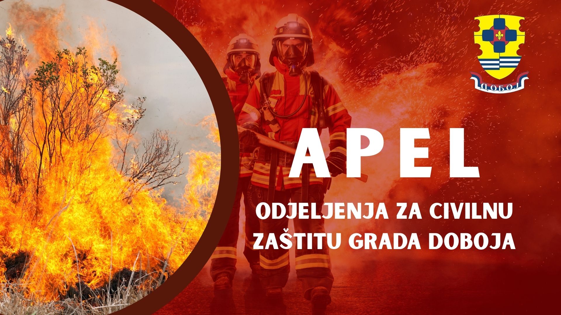 Na osnovu upozorenja OKC Doboj, Republičke uprave civilne zaštite Republike Srpske, Odjeljenje za civilnu zaštitu grada Doboja apeluje na građane da budu oprezni i odgovorni prilikom raskrčivanja i čišćenja njiva, voćnjaka i dvorišta, jer je u ovom periodu godine pojačano paljenje biljnog otpada i korova.