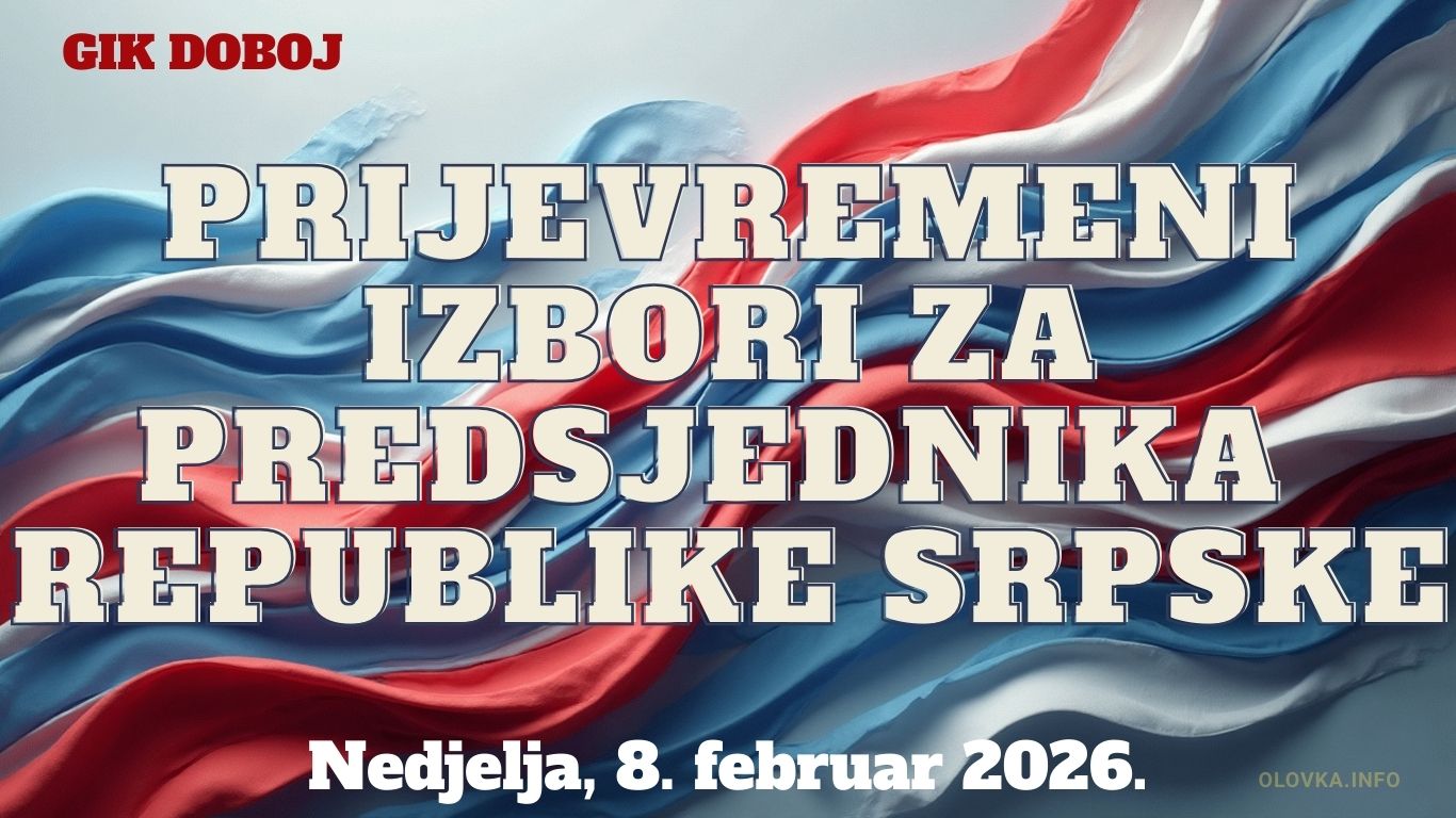 Gradska izborna komisija Doboj obavještava birače u osnovnoj izbornoj jedinici Doboj da će se ponovljeni prijevremeni izbori za predsjednika Republike Srpske održati dana 8. februara 2026. godine (nedjelja) na sljedećim biračkim mjestima: