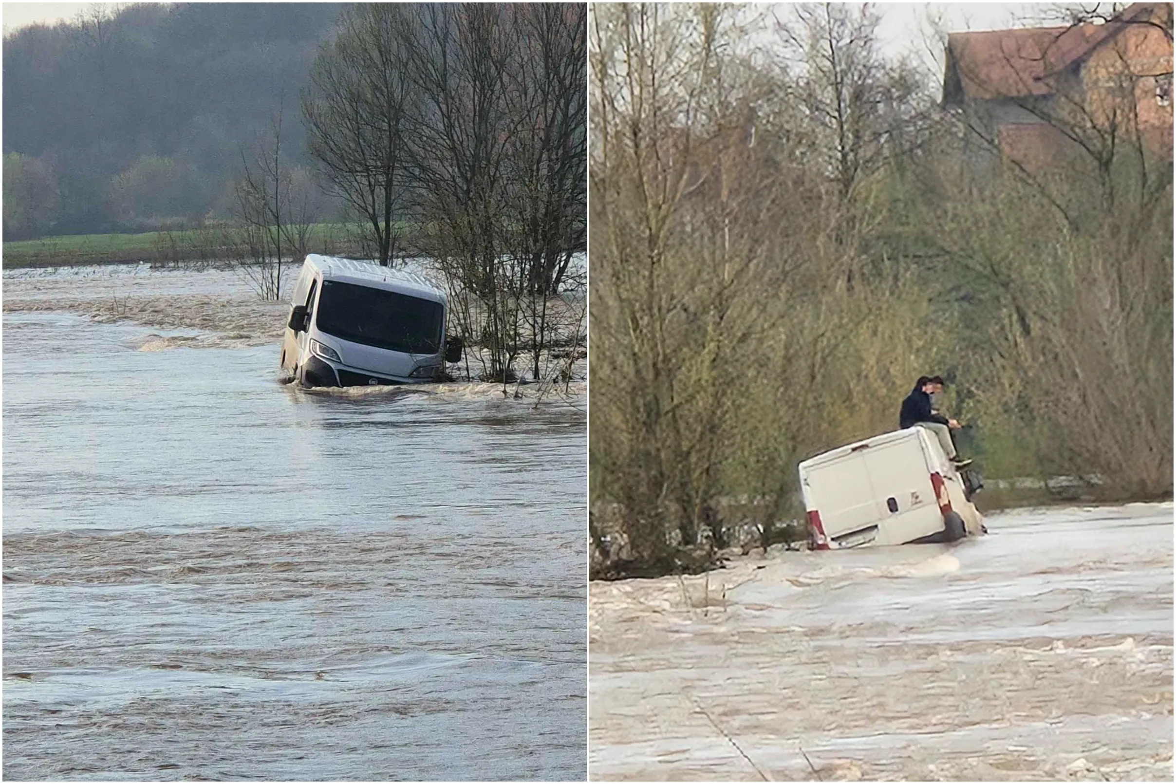 DOBOJ / PETROVO /GRAČANICA Ignorisali upozorenja pa završili u bujici Spreče: Spaseni sa krova kombija FOTO
