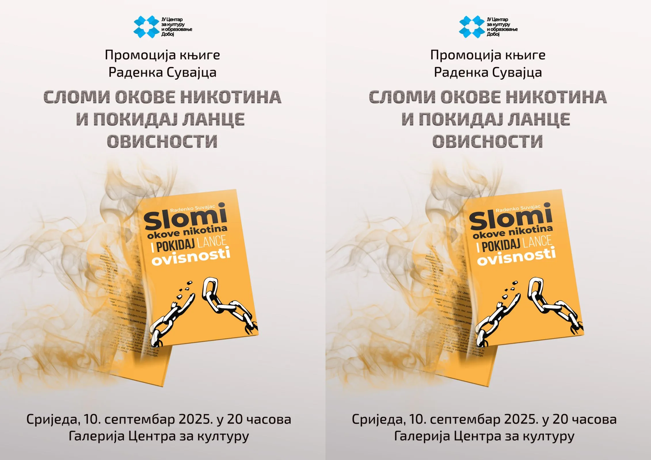 Naslovna DobojU Doboju promocija knjige Radenka Suvajca “Slomi okove nikotina i pokidaj lance ovisnosti”