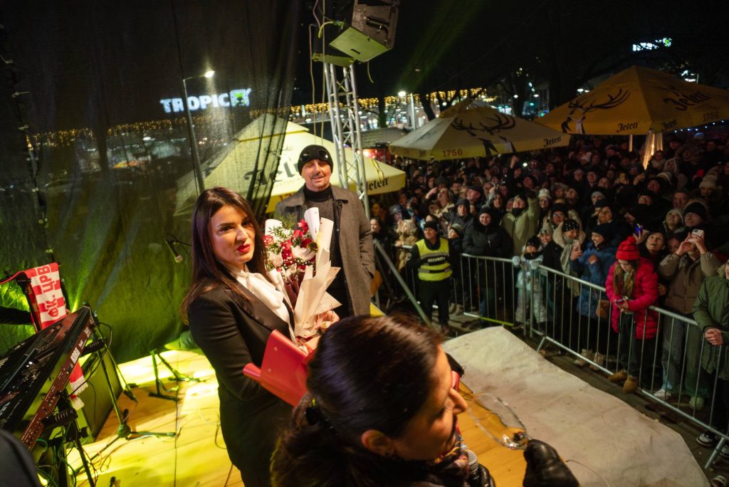 Građane Doboja svečanim čestitkama, šampanjcem i odbrojavanjem u Novu godinu je uvela Dijana Kalenić, zamjenica gradonačelnika Doboja.