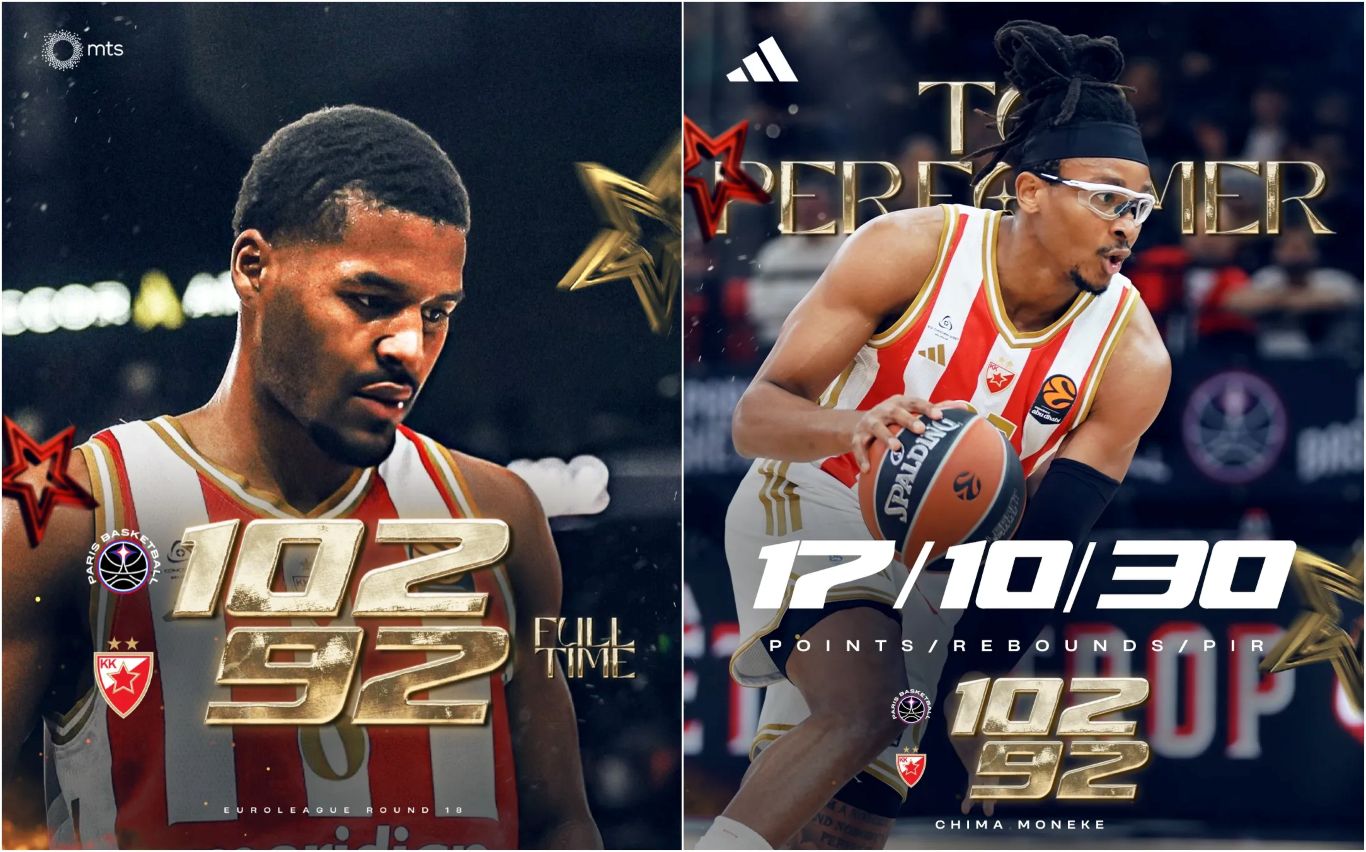 Košarkaši Pariza su na svom terenu porazili Crvenu zvezdu i tako prekinuli niz od šest uzastopnih poraza. Slavili su rezultatom 102:92 (28:18, 23:28, 28:12, 23:34).