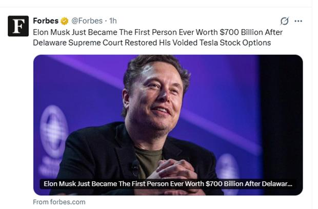Do skoka bogatstva je došlo nakon što je Vrhovni sud Delavera preinačio presudu nižeg suda, kojom je Masku bila poništena dodjela opcija na akcije „Tesle“, koje sada vrijede 139 milijardi dolara.