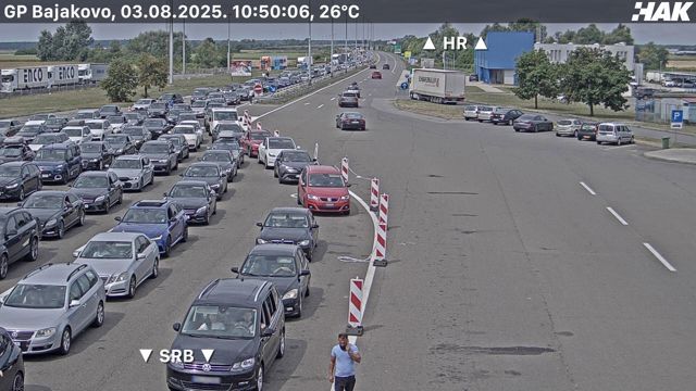Kolona vozila na graničnom prelazu Bajakovo između Hrvatske i Srbije duga je oko pet kilometara, saopšteno je iz Hrvatskog auto-kluba.