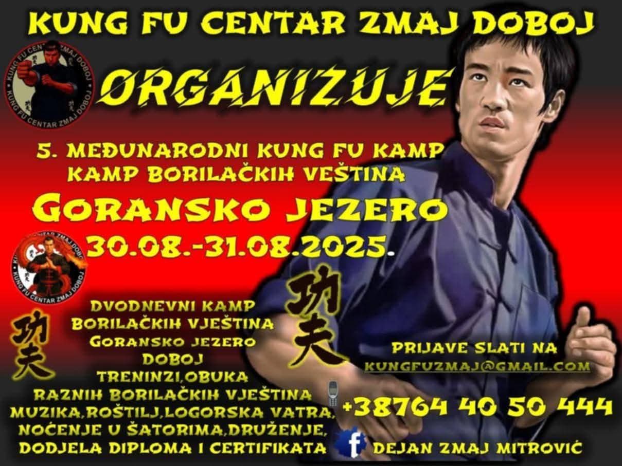 Predstojećeg vikenda 30. i 31. avgusta (subota i nedelja) 2025, Kung fu Centar “Zmaj Doboj” organizuje Međunarodni tradicionalni kung fu kamp – kamp borilačkih vještina koji će se održati na Goranskom jezeru.