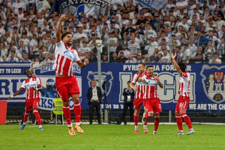 Fudbaleri Crvene zvezde nadigrali su u Poznanju ekipu Leha i pobijedili rezultatom 1:3 (1:1) u okviru prvog meča trećeg kola kvalifikacija za Ligu šampiona.