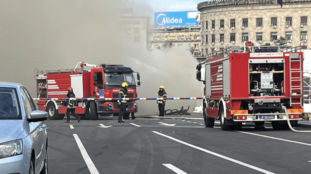 Sedam vatrogasnih vozila je na terenu i rade na dogašavanju požara koji je izbio na jednom od šatora ispred Narodne skupštine.