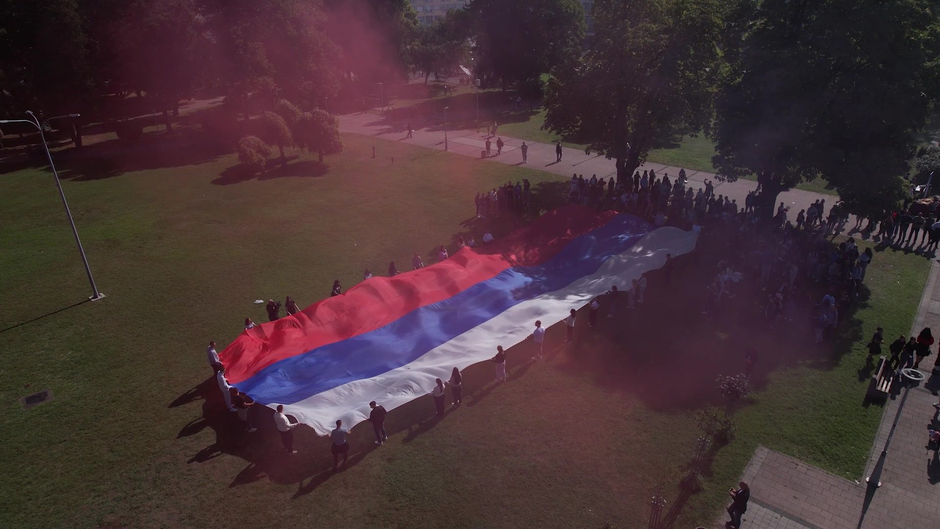 Učenici dobojskih srednjih škola obilježili Dan srpskog jedinstva; Razvili zastavu dužine 33 metra FOTO/VIDEO