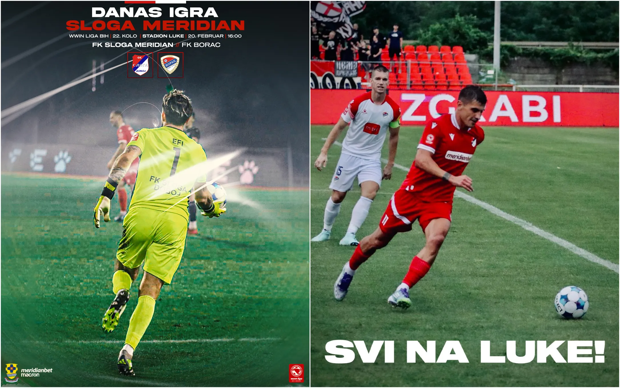 Fudbaleri Sloge iz Doboja i banjalučkog Borca igraće, od 16 časova, prvi susret 22. kola Premijer lige BiH.