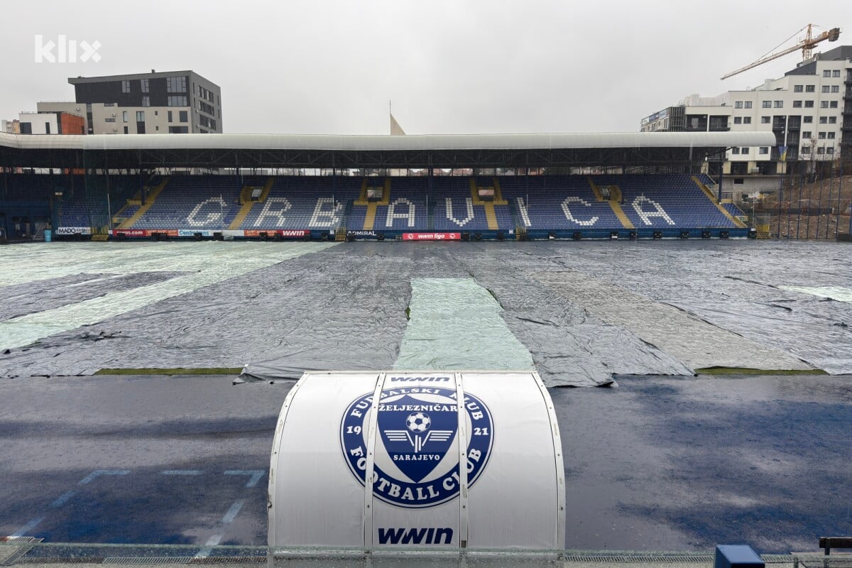 Posljedica je to najavljenih sniježnih padavina širom zemlje tokom vikenda, a zbog toga je teren Grbavice zaštićen i prekriven kako bi se u tom slučaju lakše očistio i bio uslovan za igru.